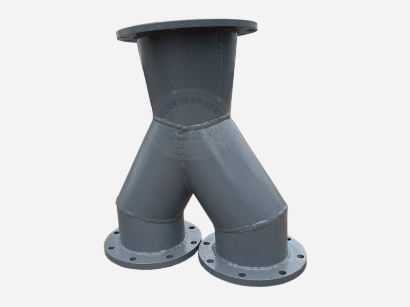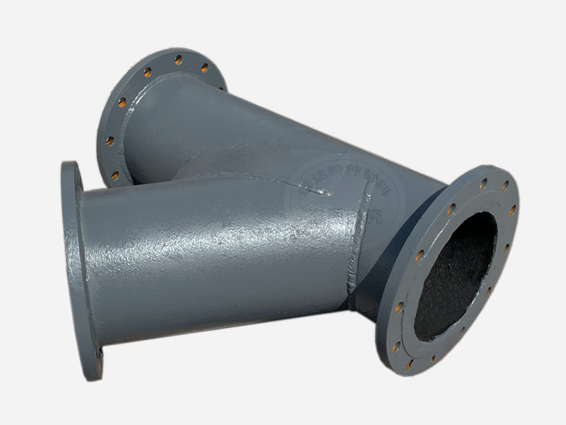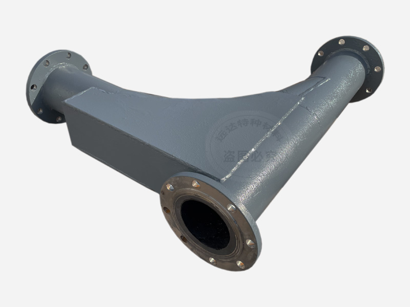 耐磨陶瓷三通從內(nèi)到外由剛玉陶瓷(AL2O3)層、過渡層和鋼管層組成,陶瓷層是由2600℃以上的熔融氧化鋁在離心力的作用下,均勻滲透復(fù)合在鋼管內(nèi)壁上的致密、光滑陶瓷層與鋼管成為一體。